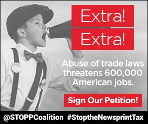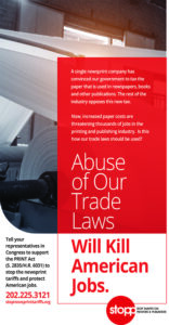 Link ads to the petition at https://www.stopnewsprinttariffs.org/join-the-fight-to-protect-u-s-jobs/
